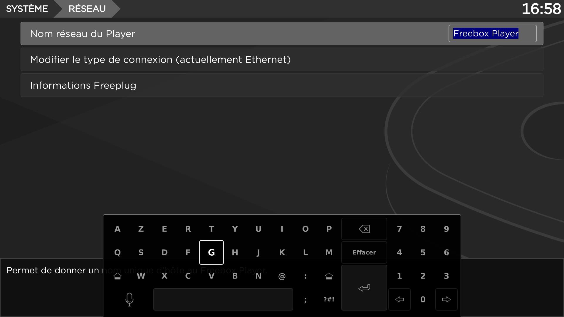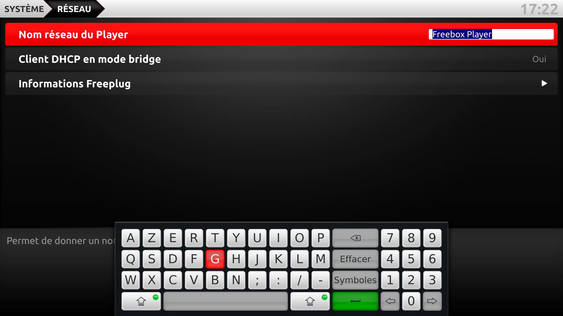 Allez ensuite dans “Système/Réglage réseau/Nom réseau du player“. Il ne reste plus qu’à saisir le nom personnalisé.